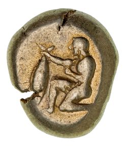 MYSIA, Kyzikos, (c.500-475 B.C.), electrum stater (15.94 g), obv. nude youth kneeling left, holding a ...