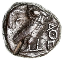 PALESTINE, Gaza, (5th - 4th century BCE), silver tetradrachm, (16.88 g), imitating Athens, obv. helmeted head of Athena right, rev. owl standing right, head facing, olive spray and moon to left, A**Q*E to right (cf HGC 10 533, 594, GBC 1009, cf S.6058). Dark toned, test cut below owl on reverse, very fine.