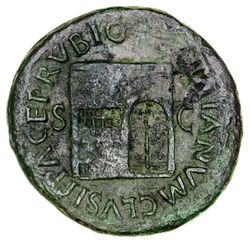NERO, (54 - 68 AD), copper as (11.21 g), Rome mint, issued 65 AD, obv. laureate bust of Nero right, NERO CAESAR AVG GERM IMP around rev. Temple of Janus with closed doors, garland around, latticed window on left, PACE P R VBIQ PARTA IANVM CLVSIT S-C (S.1974, RIC 306, BMC 227, Cogen 171). Pleasant green patina, very fine.