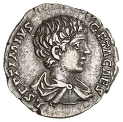 GETA, (A.D. 209-212), silver denarius, issued 199-200, Laodicea Mint, (2.92 g), obv. laureate bust to ...