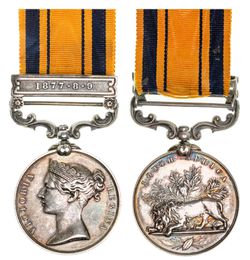 SOUTH AFRICA MEDAL 1877-79, - clasp - 1877-8-9. 164 Cr. Sergt. M.A.Jeffs. 90th Foot. Engraved. ...