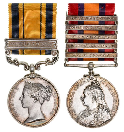 PAIR: South Africa Medal 1877-79, - clasp - 1879; Queen's South Africa Medal 1899, (type ...