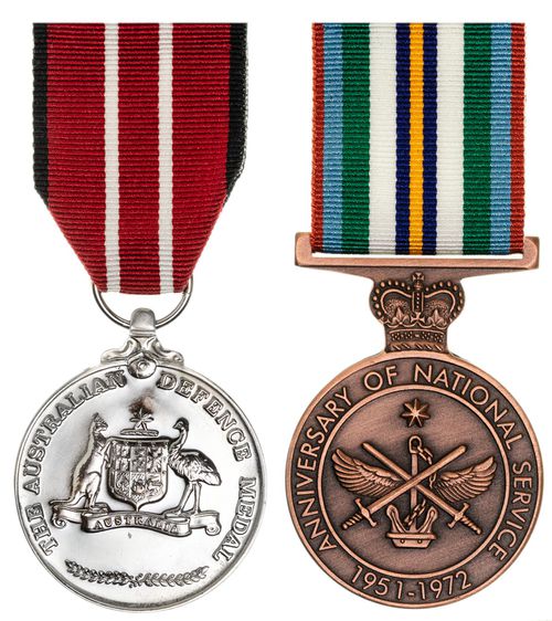 PAIR: Australian Defence Medal; Anniversary of National Service Medal. 276507 J F Parton. Both medals ...