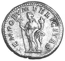 ELAGABALUS, (A.D. 218-222), silver antoninianus, Rome mint, issued A.D. 219-220, (4.650 grams), obv. radiate bust of Elagabalus draped and cuirassed to right, around IMP ANTONINVS AVG, rev. around TEMPORVM FELICITAS, Felicitas standing partly to left, holding caduceus and cornucopiae, (S.2089, RIC 149, RSC 281). Struck on a large flan, good very fine, scarce.