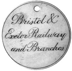 BRISTOL & EXETER RAILWAY TAVERN, twopence check in brass (28mm) issued by J. Parish. Some ...