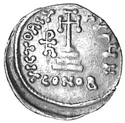 HERACLIUS, (610-641), gold solidus, issued 639-641, Constantinople mint, Officina H, (4.3 grams), obv. standing figures of Heraclius in centre, Heraclius Constantine on left, and Heraclonas on right, cross above, rev. Cross potent on three steps, monogram to left, nothing to right, around VICTORIA AVGU H, CONOB in exergue, (S.769, DOC 43g). Nearly extremely fine/good very fine and a rare officina.