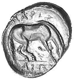THESSALY, Larissa (under Macedonian domination), (350-325 B.C.), silver drachm, (6.1 grams), obv, facing head three-quarter ...
