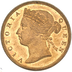 MAURITIUS, Queen Victoria, bronze two cents 1877H, 1878 (illustrated), 1882H, 1883, 1884, 1888, 1890H, 1896, 1897 (KM.8). Almost all extremely fine - uncirculated, several with full mint red. (9)