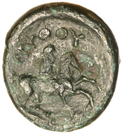 THRACE, Kingdom of, Seuthes III as king of the Odrysai, (c.324 B.C.), AE 20, (7.42 grams), uncertain mint, issued c.324 B.C., obv. laureate head of Zeus to right, rev. horseman cantering right, below a trace of a symbol, above **[S]EUQOU* between, (S.1725, SNG BMC 317-9, BMC 1-2 [P.1]). Attractive black patination, minor surface deposits, otherwise nearly very fine and rare.