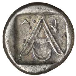 PELOPONNESOS, Argolis, Argos, silver hemidrachm, or Attic triobol, (after 320's-270's B.C.), (2.62 grams), obv. forepart of wolf at bay to left, rev. A with A and P either side at top with crescent below all within shallow incuse square, (cf.Sear 2794, BCD 1094 [p.269, LHS 96], BMC 60 [p.141], SNG Cop. 29 [Pl.1], Mycenae Pl.9, 19). Very fine and scarce.