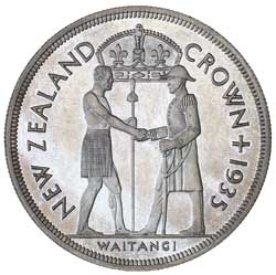 GEORGE V, Royal Mint proof silver Waitangi crown, 1935. FDC and rare.