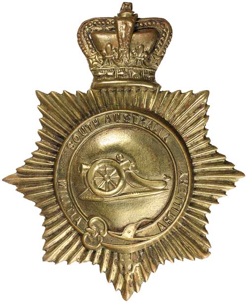 SOUTH AUSTRALIA MILITIA ARTILLERY, 1886-95, helmet plate in gilt (84mm) (Grebert p253). Very fine.