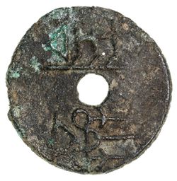 CHINA, Zhou (Chou) Dynasty, large "Xiang Yin" round cash with round hole, (ca.350-220, B.C.), characters ...
