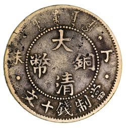 CHINA, Empire, brass ten cash (1907) (KM.Y10.5). Fine and rare.