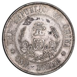 CHINA, Republic Sun Yat Sen, silver dollar, undated (1912) (KM.Y.319). Underlying mint bloom, light golden toning, lettering weakness in part of reverse, otherwise nearly extremely fine.