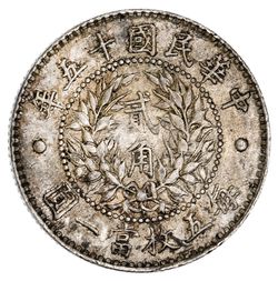 CHINA, Republic, unadopted design of the National emblem, silver twenty cents, year 15, 1926, (KM.Y.335). ...
