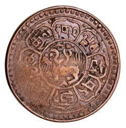 TIBET, Theocracy, copper one sho, BE 15-52 (1918), Dode mint, (KM.Y.21). Fine and a rare type coin.