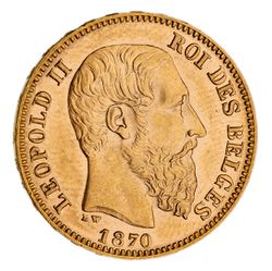 BELGIUM, Leopold II, twenty francs, 1870 (KM.32). Extremely fine.