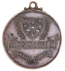 TAKAHE AKAROA WINNING TEAM, medal, uniface, struck in bronze (33mm), no maker, ring top suspension, ...