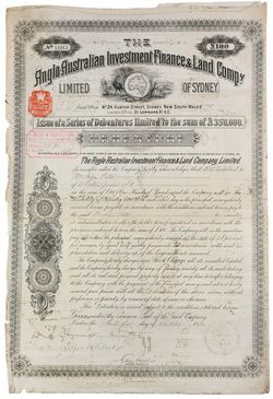 THE ANGLO-AUSTRALIAN INVESTMENT FINANCE & LAND COMPY LIMITED (OF SYDNEY), debenture no.1883 for one hundred ...