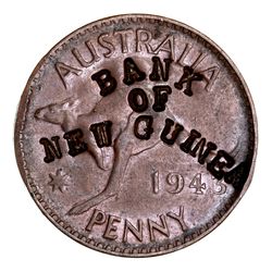 TERRITORY OF NEW GUINEA, Australia penny 1943Y, countermarked 'Bank/of/New Guinea'. Fine.