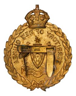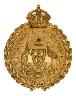 TERRITORY OF NEW GUINEA, District Officer's cap badge, c1930s, in gilt brass (54x67mm) (Mira p173 ...