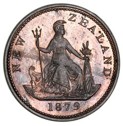 NEW ZEALAND, pattern penny, 1879 by Joseph Moore (A.399). Red and brown uncirculated and very rare.