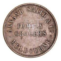 ANNAND SMITH & CO., Melbourne penny (A.18); Peace & Plenty, 1858 Melbourne penny (A.651); De ...