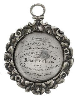GARDENER'S AND AMATEUR'S HORTICULTURAL SOCIETY, Hobart Town, 1861, in silver (57mm and 67mm), by Charles Jones, obverse inscribed 'Gardeners' / and / Amateurs' / Horticultural / Society, / Hobart Town, reverse inscribed 'Presented to / J. Dickenson Esqre / for the best collection of / Green House PLants / in the / Amateur Class, / at the / Champion Show, / 5th and 6th Dec. 1861. Extremely fine and rare.