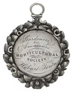 GARDENER'S AND AMATEUR'S HORTICULTURAL SOCIETY, Hobart Town, 1861, in silver (57mm and 67mm), by Charles ...