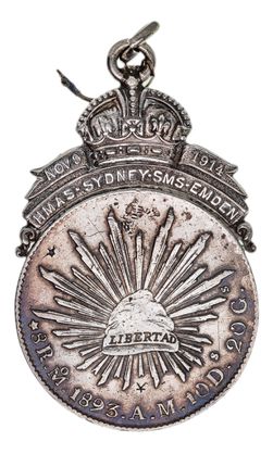 HMAS SYDNEY, SMS Emden, Nov 9 1914, Mexican silver eight reales 1893 A.M. Mexico City ...