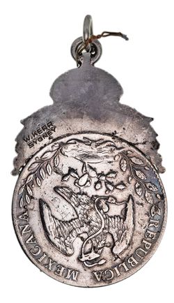 HMAS SYDNEY, SMS Emden, Nov 9 1914, Mexican silver eight reales 1893 A.M. Mexico City Mint salvaged from the Emden and set with a scroll mount on top by W.Kerr Sydney(C.1914/4). Two Chinese chop marks, good very fine, sold with original W.Kerr plush case.