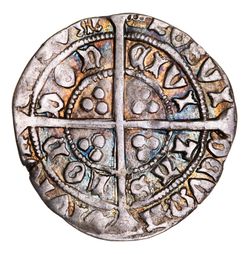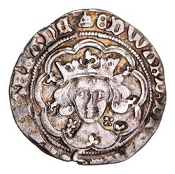 HENRY VI, first reign, (1422-61), silver groat (3.46g), annulet issue, mm incurved pierced cross, Calais ...