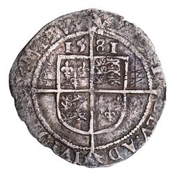 ELIZABETH I, (1558-1603), silver sixpence, fifth issue, 1581, bust 5a, mm latin cross, (S.2572). Toned, edge chips, fine.