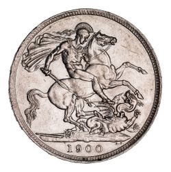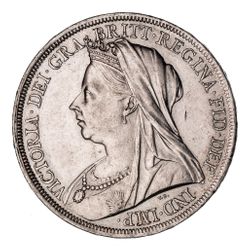 QUEEN VICTORIA, old head, silver crown, 1900 LXIV (S.3937). Lightly toned, nearly extremely fine.