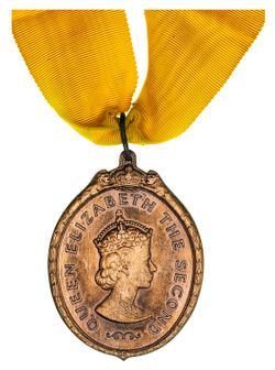 NYASALAND, Elizabeth II, Chief's Medal, 1937 in bronze, oval (68x50mm). Red gold patina with yellow ...