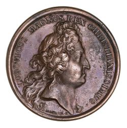 FRANCE, Louis XIV, in bronze (40mm) by Jean Mauger, medal commemorating Brest being made into ...