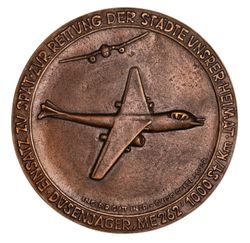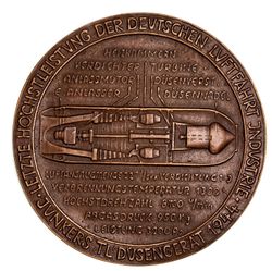 GERMANY, Jet Fighter Messerschmitt ME262, 1944, bronze 110mm, by Guido Goetz, (son of Karl Goetz), obv. views of the plane in flight, rev. diagram of the propulsion system, (Kinast 751). Extremely fine and very rare.