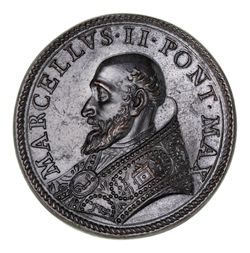 VATICAN, Pope Marcellus II, Cervini, (1555), in bronze 31mm, obv. bust facing left, rev. Christ giving keys to Peter, (Spink 561, Mazio 74). Good extremely fine.
