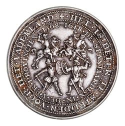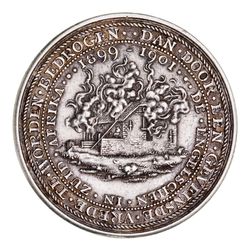 SOUTH AFRICA, ZAR, Boer Republic Patriotic medal 1899-1901 in silver (33mm) obv refers to British Atrocity; rev 1568-1648 war with Spain. Toned extremely fine.