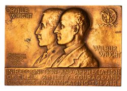 USA, ORVILLE AND WILBUR WRIGHT 1909, bronze plaque 80 x 55 mm, "Resolution of Congress ...