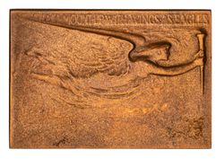 USA, ORVILLE AND WILBUR WRIGHT 1909, bronze plaque 80 x 55 mm, "Resolution of Congress March 4, 1909", "In Recognition and Appreciation of Their Ability, Courage, and Success in Navigating the Air", obv. busts facing left, rev. winged figure in flight. Extremely fine.