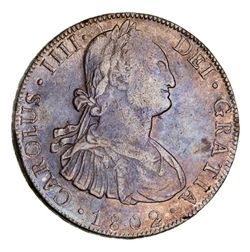 BOLIVIA, Charles IIII, silver eight reales, 1802 P.P., Potosi mint (KM.73). Very fine.