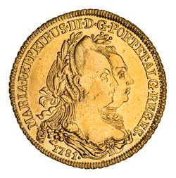 BRAZIL, Mary I and Peter III, gold 6,400 reis or half Johanna, 1781 R(Rio)(KM.198.2). Cleaned, very fine/good very fine.