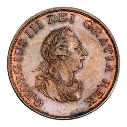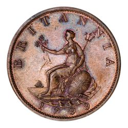 GREAT BRITAIN, George III copper halfpenny, 1799 (S.3778) five incuse gunports. Medium brown good extremely fine.