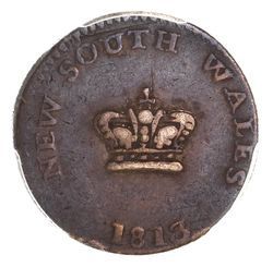 NEW SOUTH WALES, fifteen pence or dump, 1813 (Mira dies A/1). Traces of several of ...