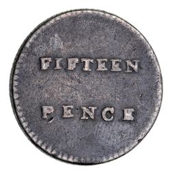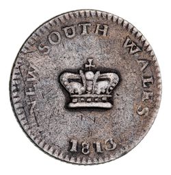 NEW SOUTH WALES, fifteen pence or dump, 1813 (Mira dies A/1). Traces of several of ...