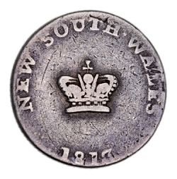 NEW SOUTH WALES, fifteen pence or dump, 1813 (Mira dies A/1). Traces of several of ...