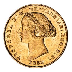 QUEEN VICTORIA, second type, 1858. Reverse diagonal hairline below crown, minor surface marks, otherwise good extremely fine and rare, especially in this condition.