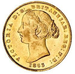 QUEEN VICTORIA, second type, 1863. Slight scuffing on the reverse above the wreath tie, otherwise uncirculated and very rare in this condition, one of the finest known.